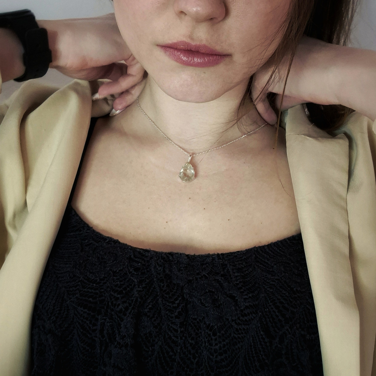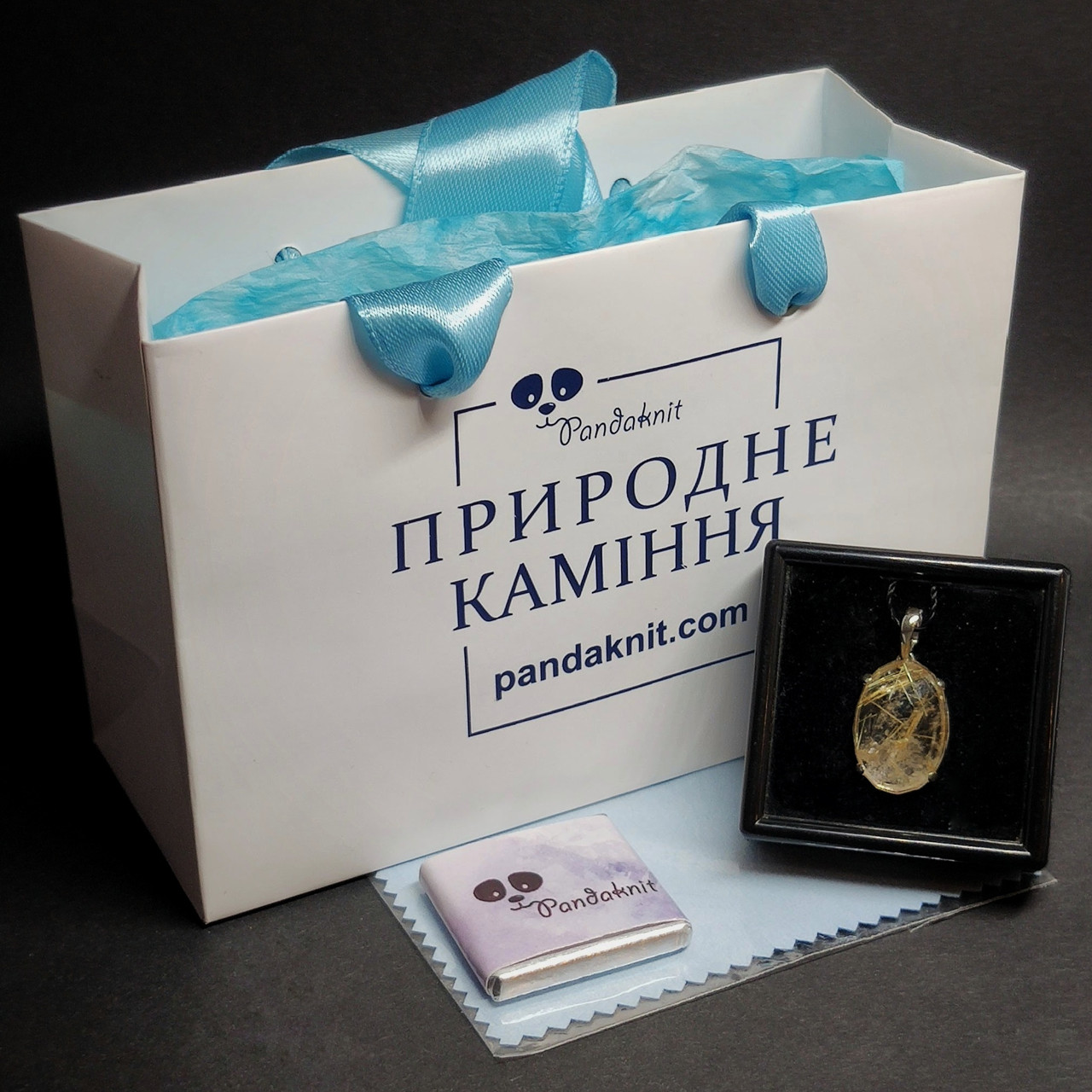 Кулон срібний з природним каменем рутиловим кварцем волосатиком для жінки