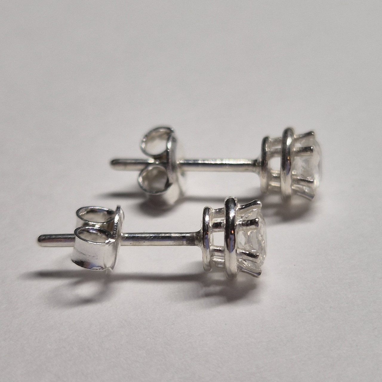 Сережки-пусети срібні з природним прозорим граненим місячним каменем, тендітні сережки