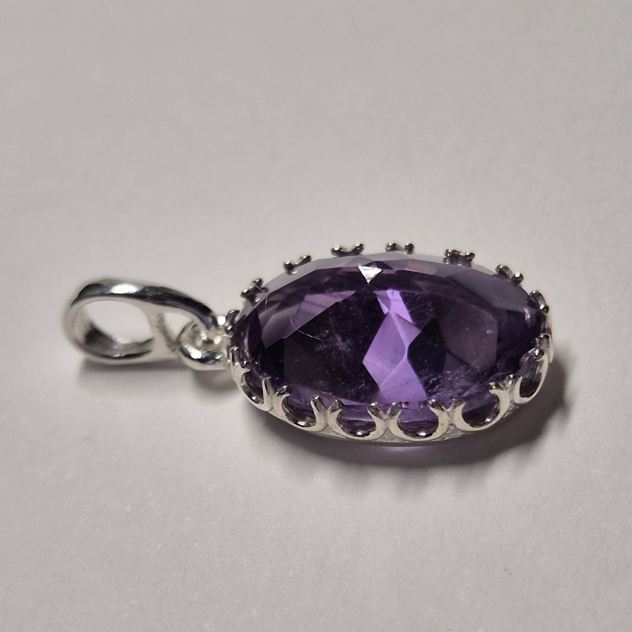 Кулон срібний жіночий з натуральним каменем аметистом в огранці, сваленим гемологом, в ажурній оправі
