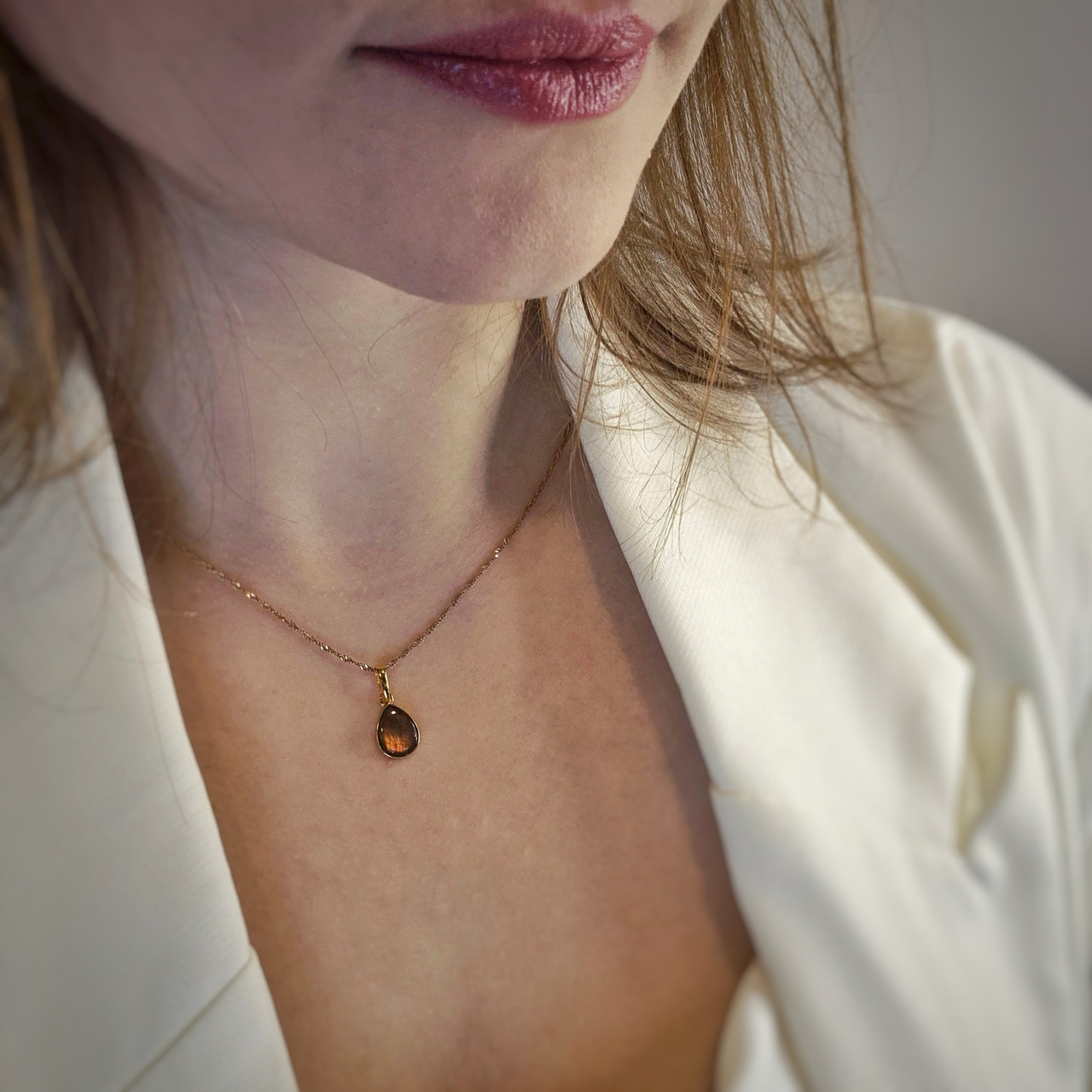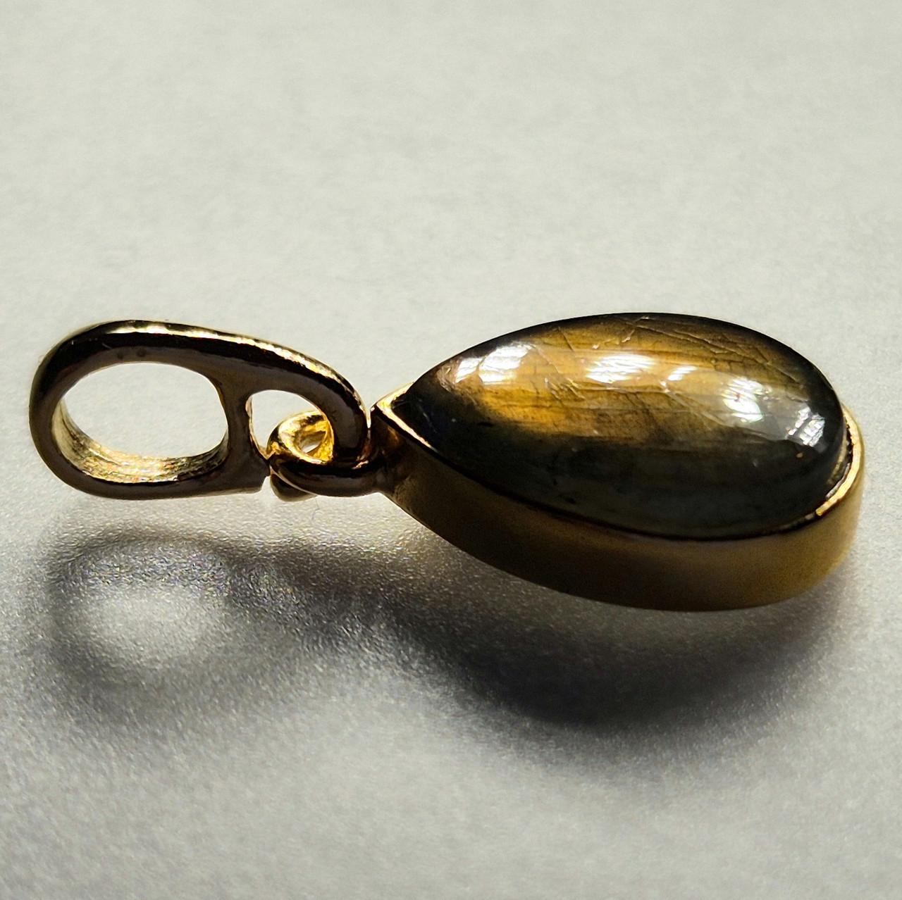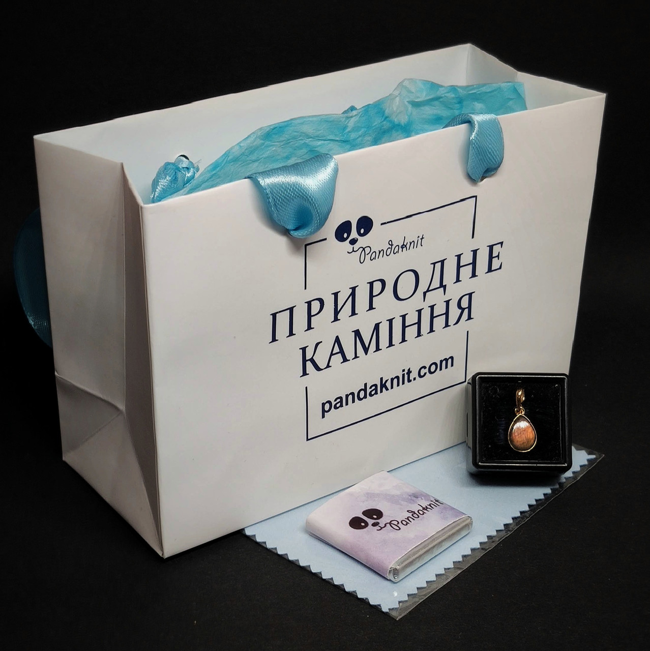Кулон з природним лабрадором в сріблі 925 з позолотою прозорий персиковий рідкісний лабрадорит жіночий чоловічий