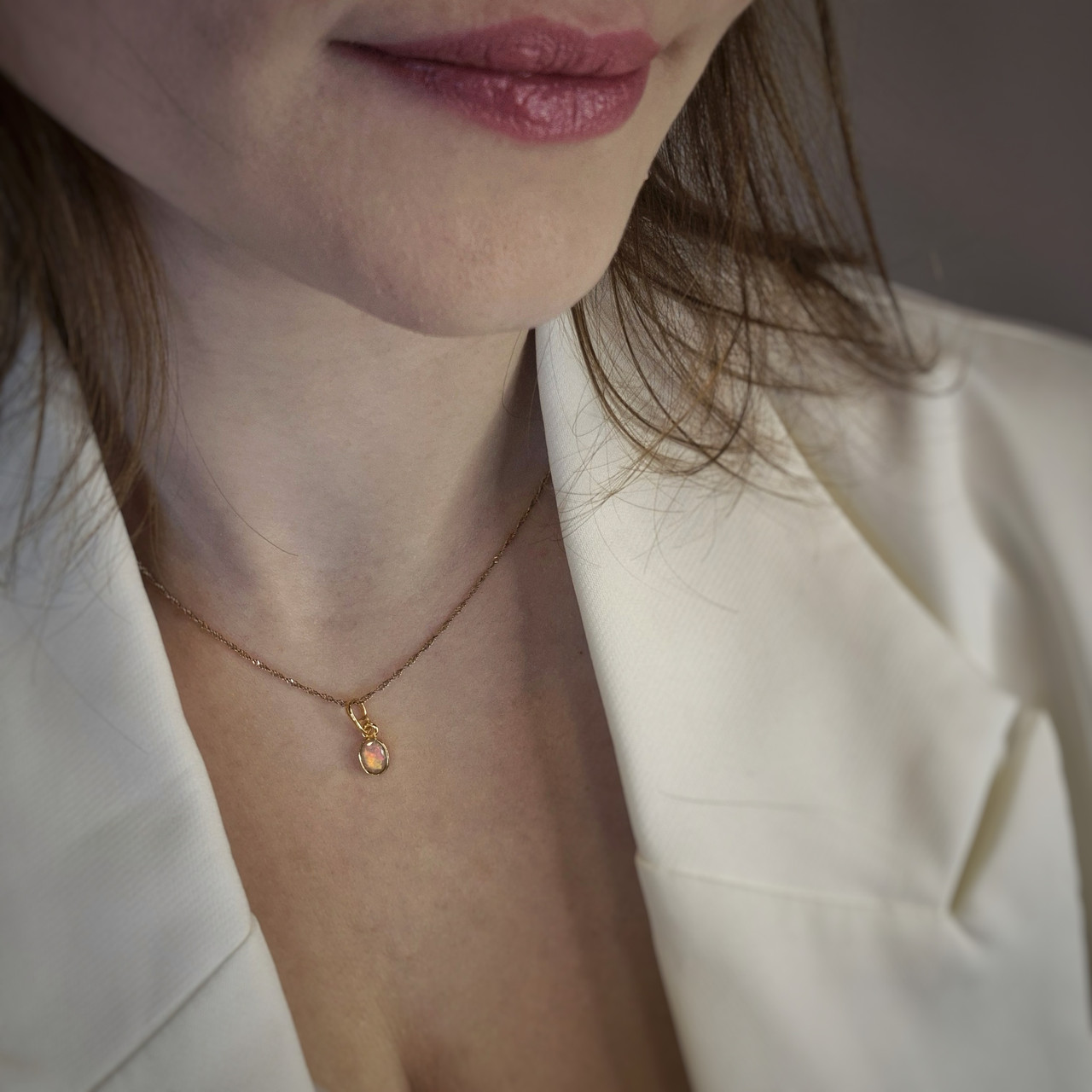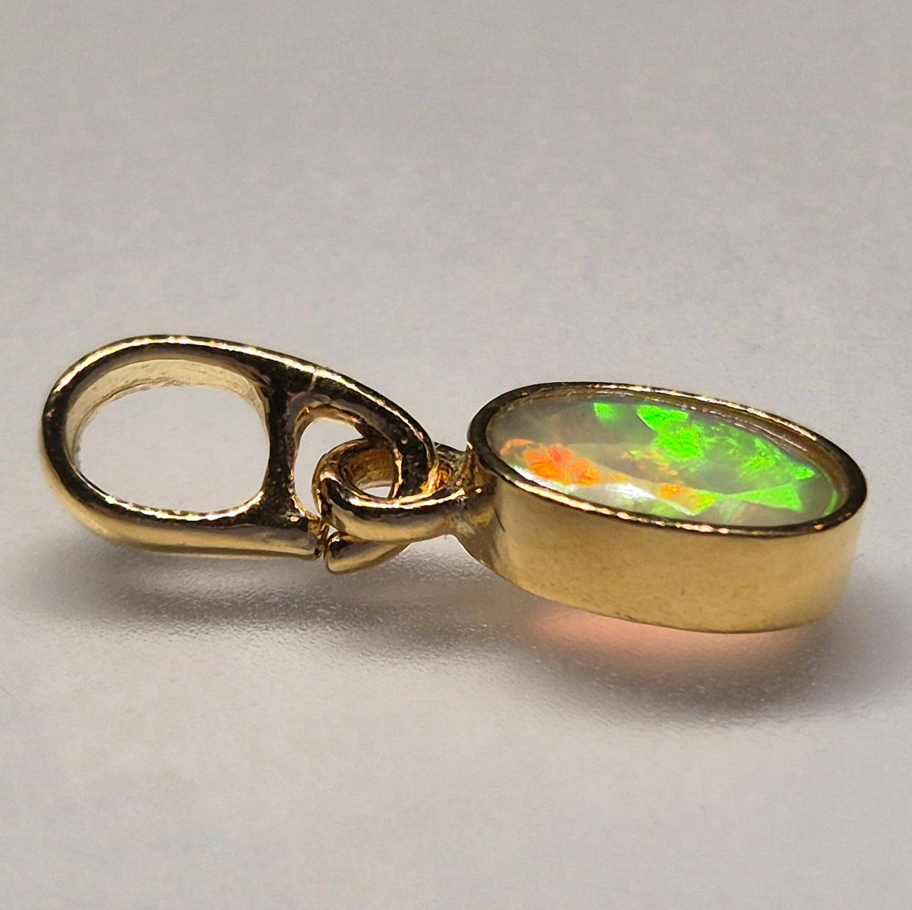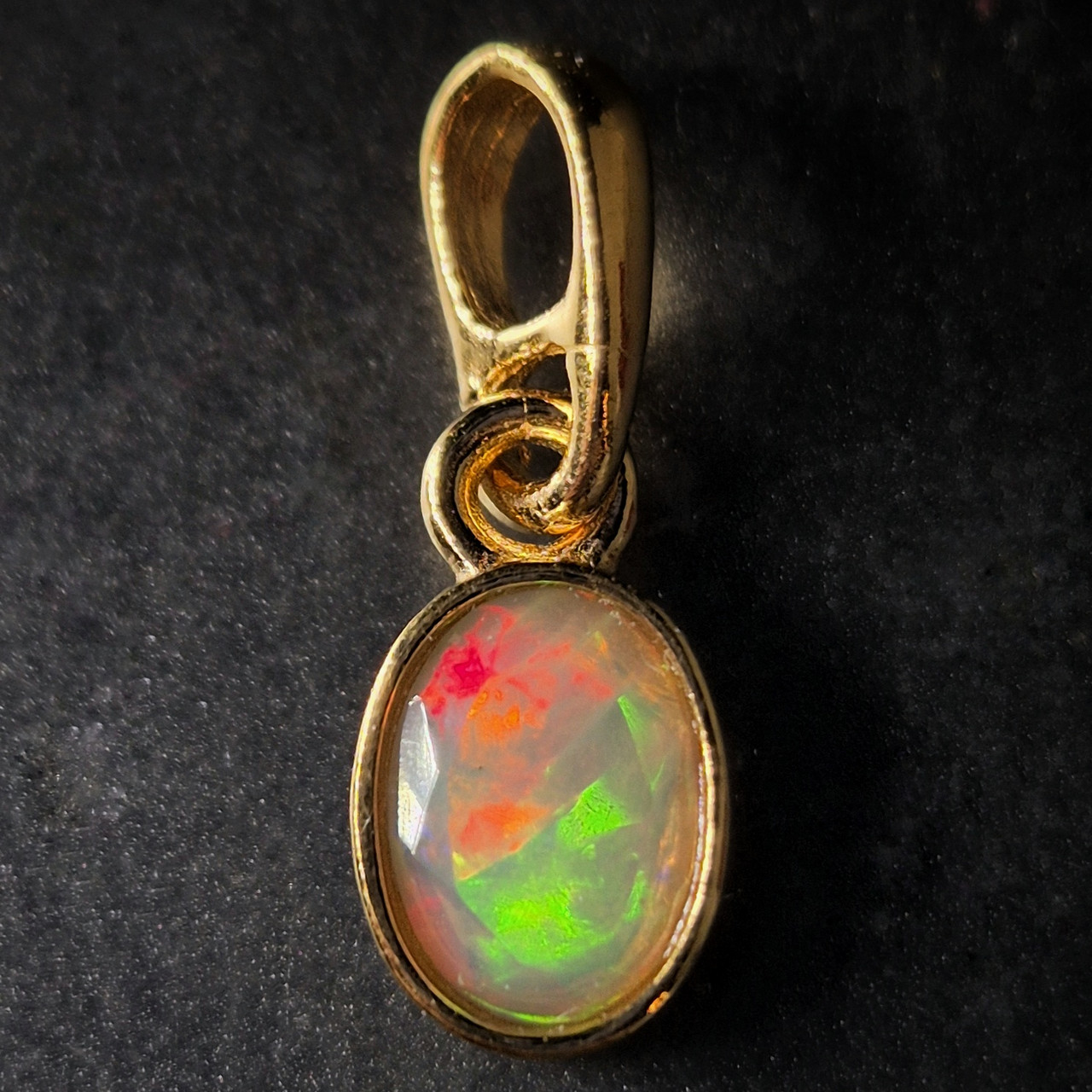 Кулон із природним ефіопським опалом в ограні в серебрі з позолотою овал, природний камінь схвалений геммологом