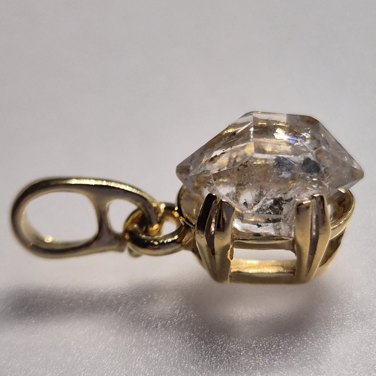 Кулон срібний позолота з природним прозорим кристалом діамантового кварцу геркімеру, ручна робота