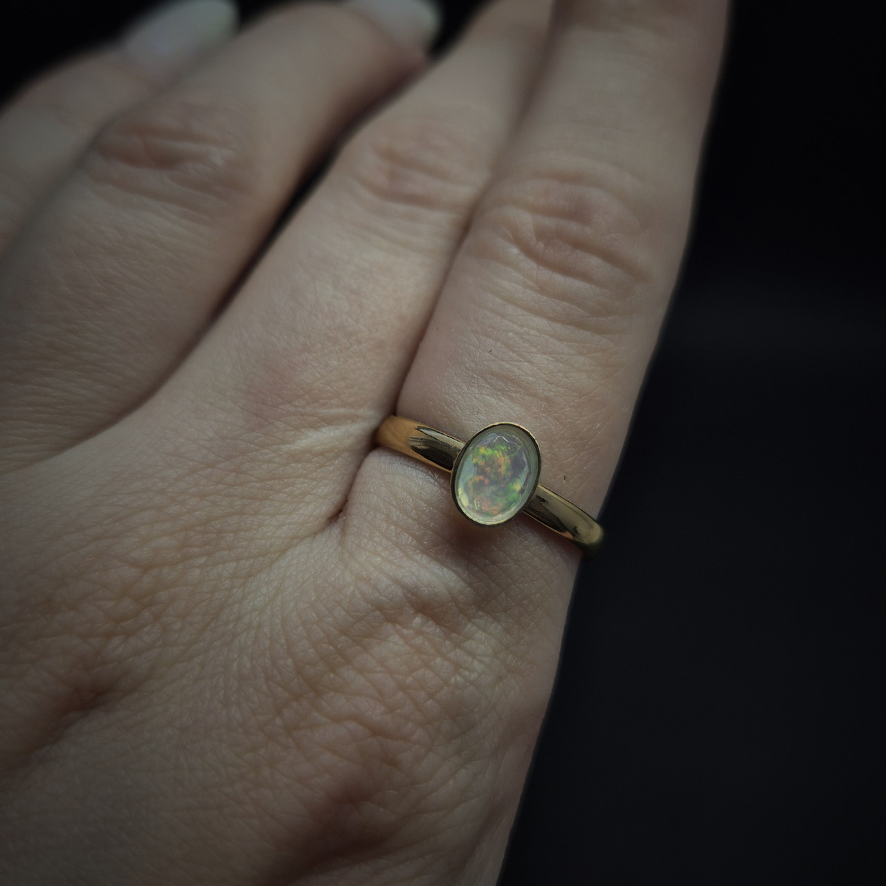 Срібна каблучка 925 позолчене з природним ефіопським опалом огранка чоловіча жіноча прикраса