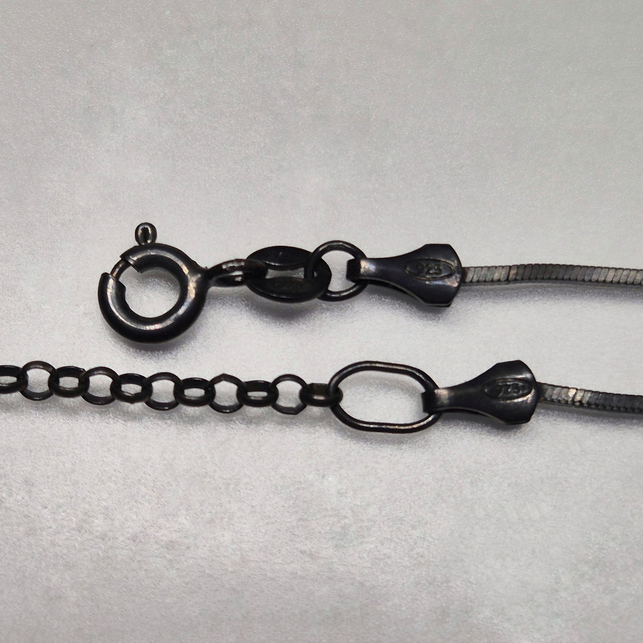 Ланцюжок чорнене срібло 925 під кулон плетіння квадратний снейок товщина 1.3 мм, довжина 45 см