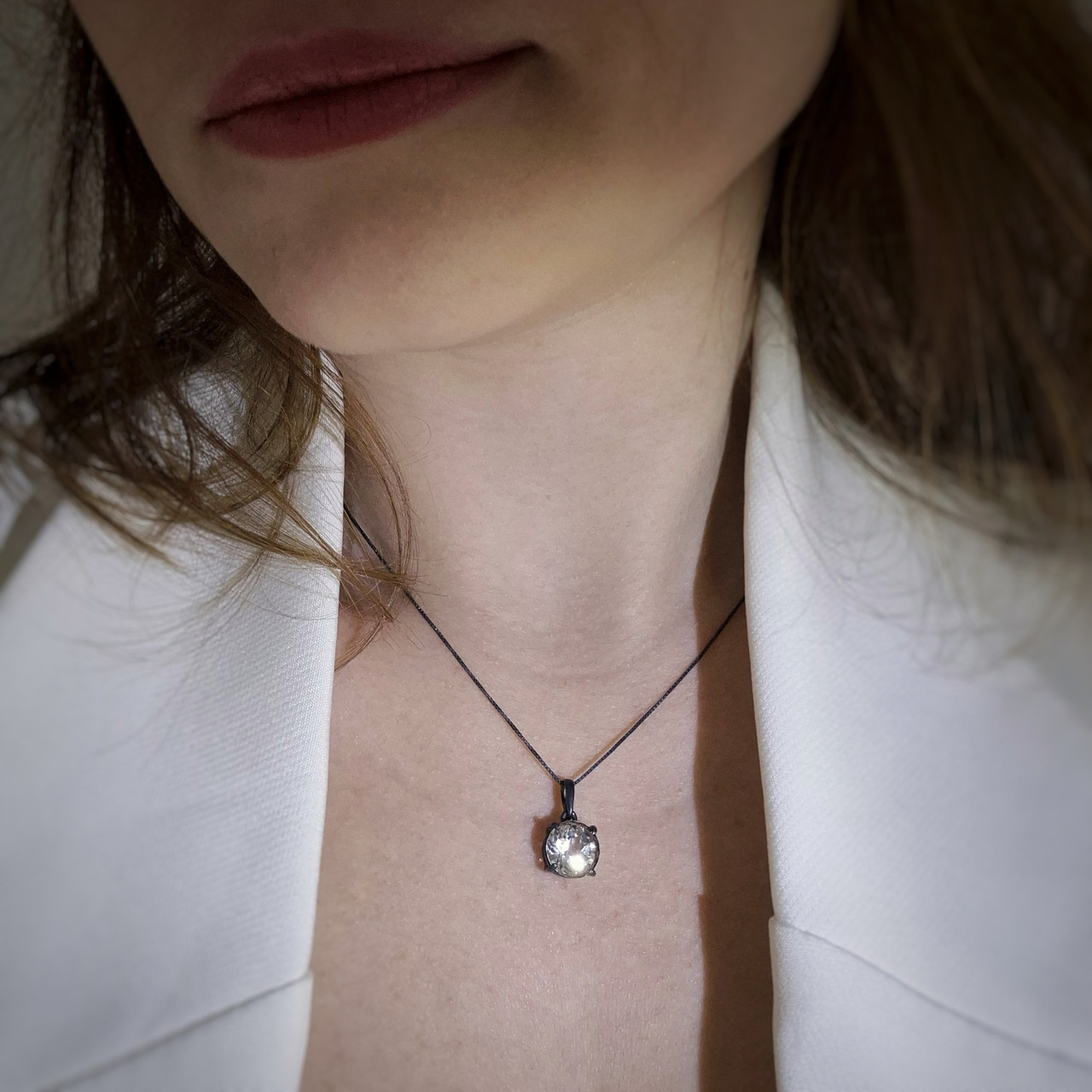 Кулон срібний чорнений із природним каменем прозорим топазом Підвіска ручної роботи жіноча кругла