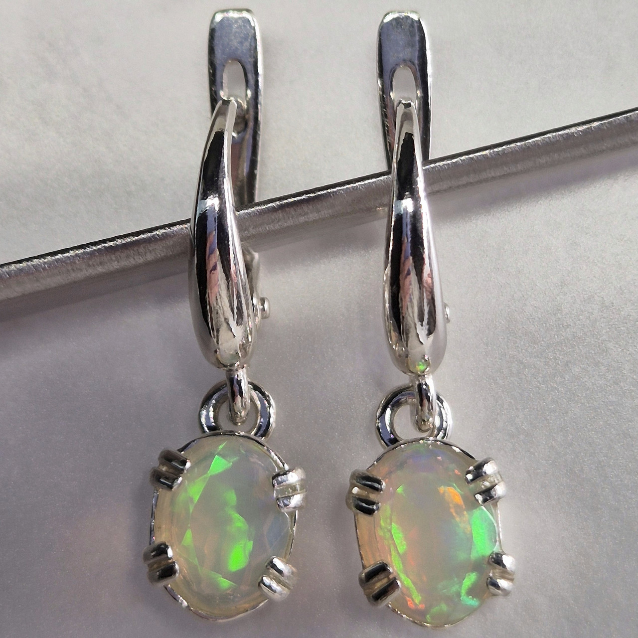 Сережки срібні з природними ефіопськими опалами в огранці, виробництво Україна, ніжна весільна прикраса